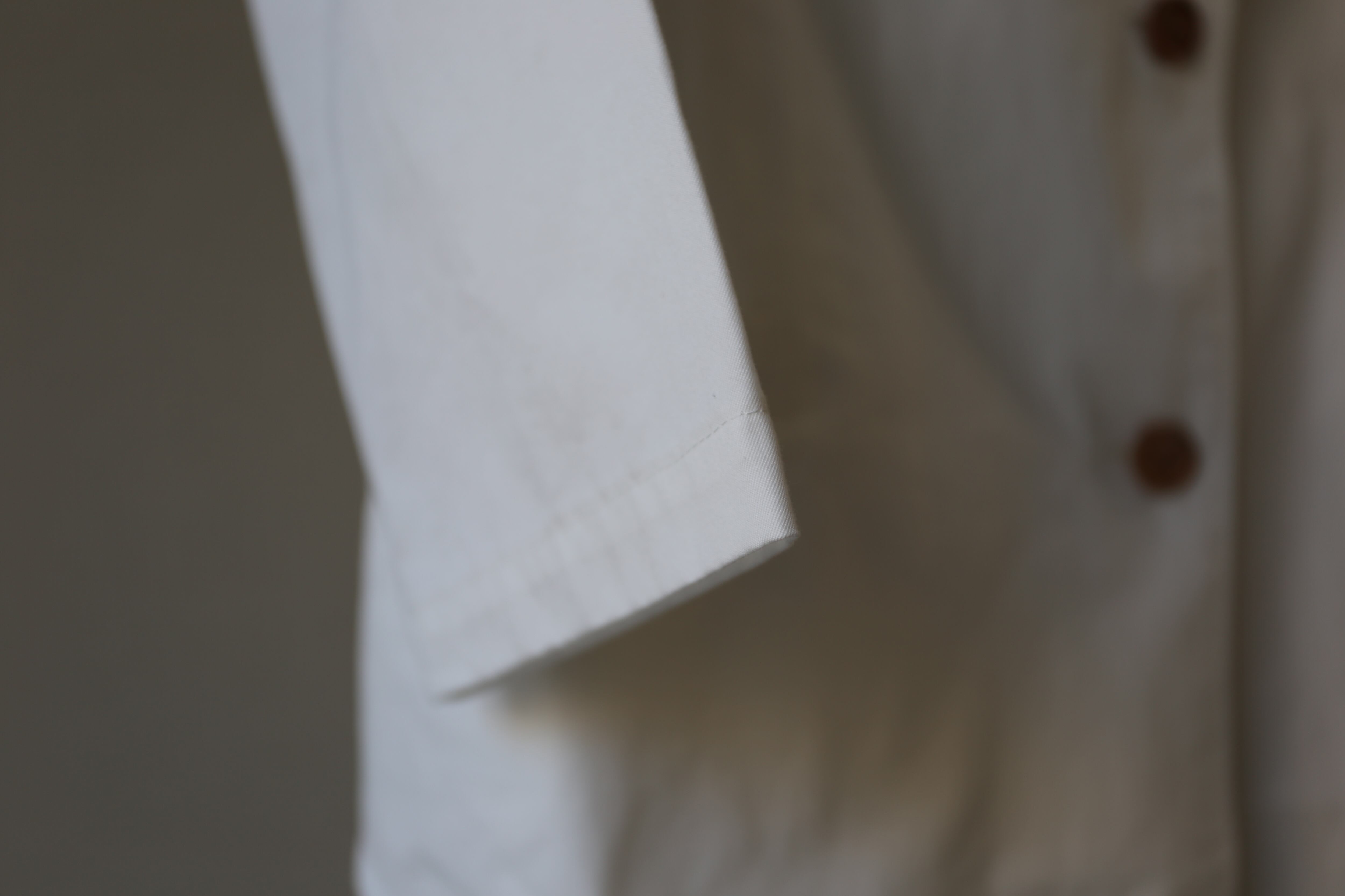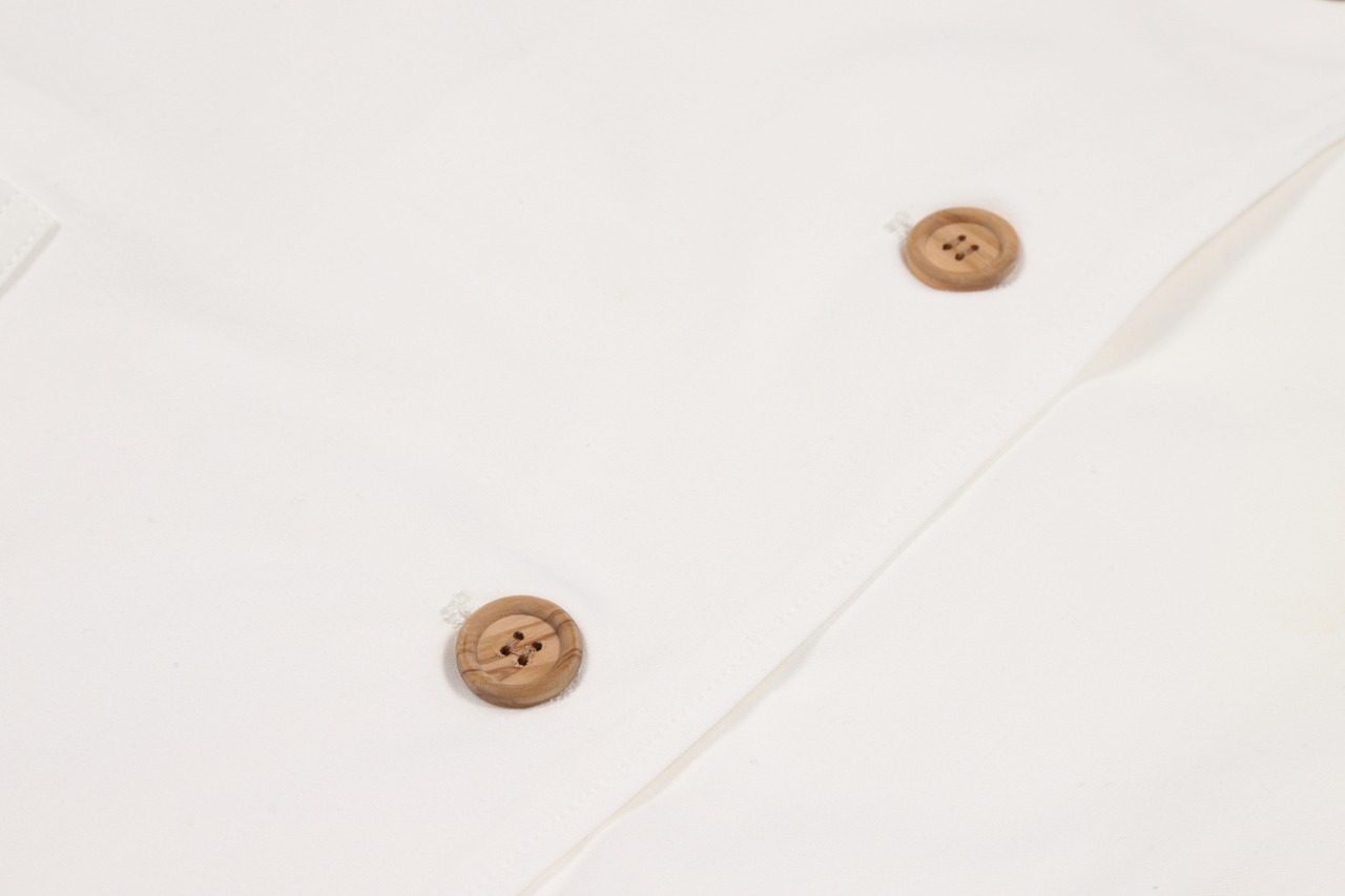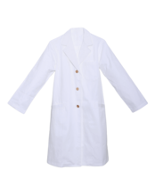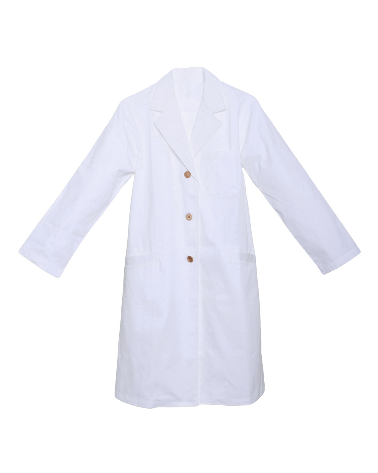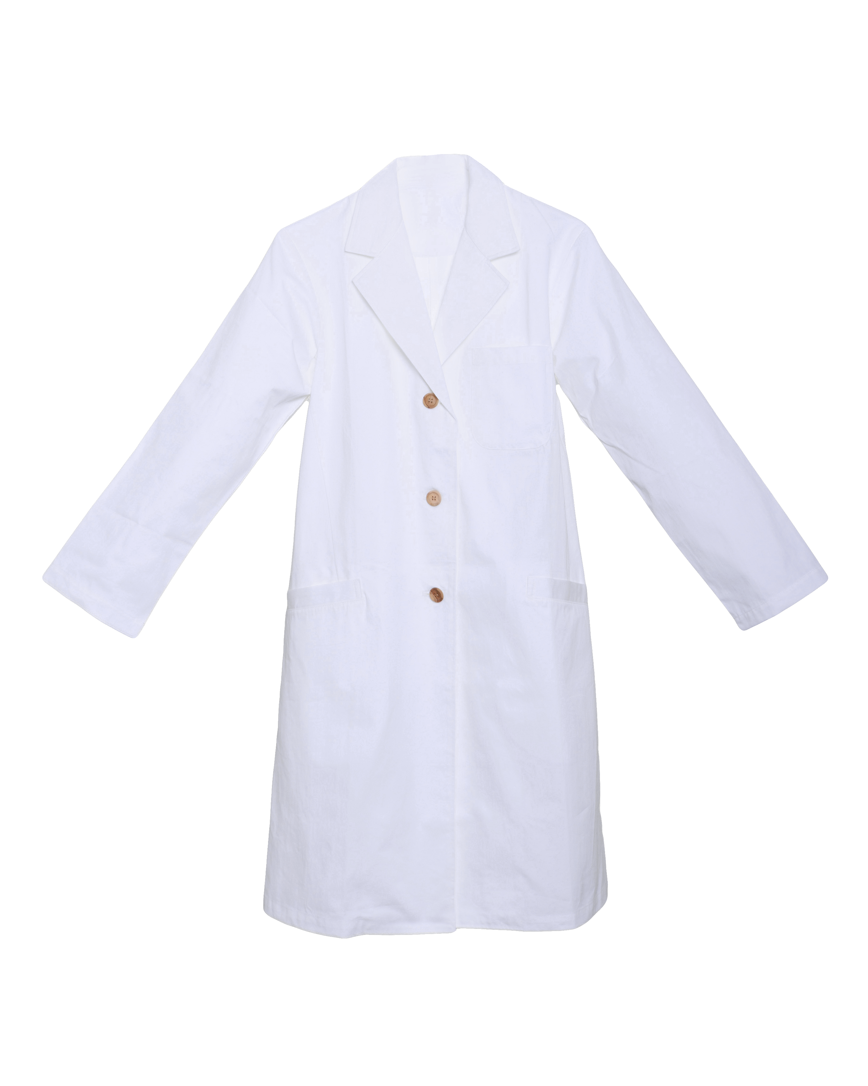 オーガニックコットン100%の高品質な生地で作った白衣です。ポリエステルと違い、とても優しい肌触りです。心地良く、毎日のお仕事にご使用いただけます。