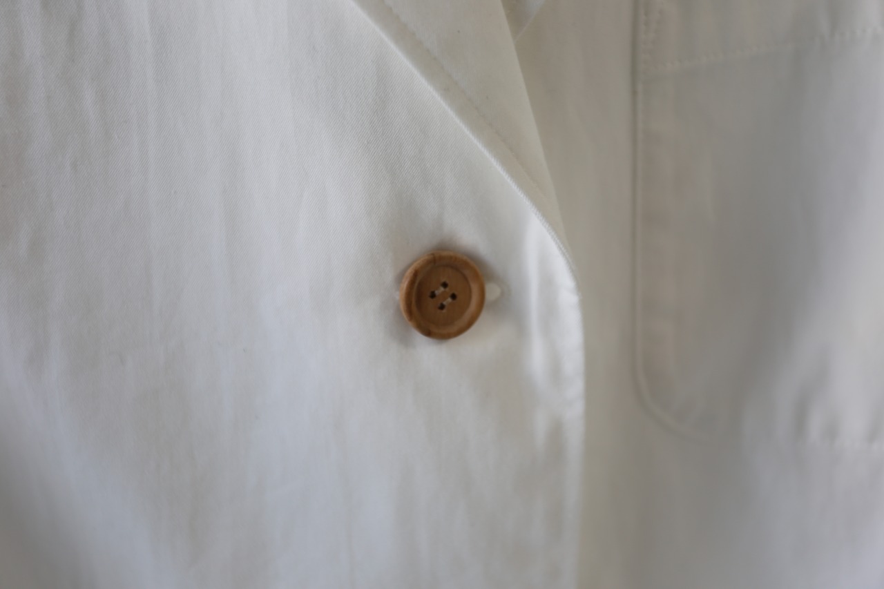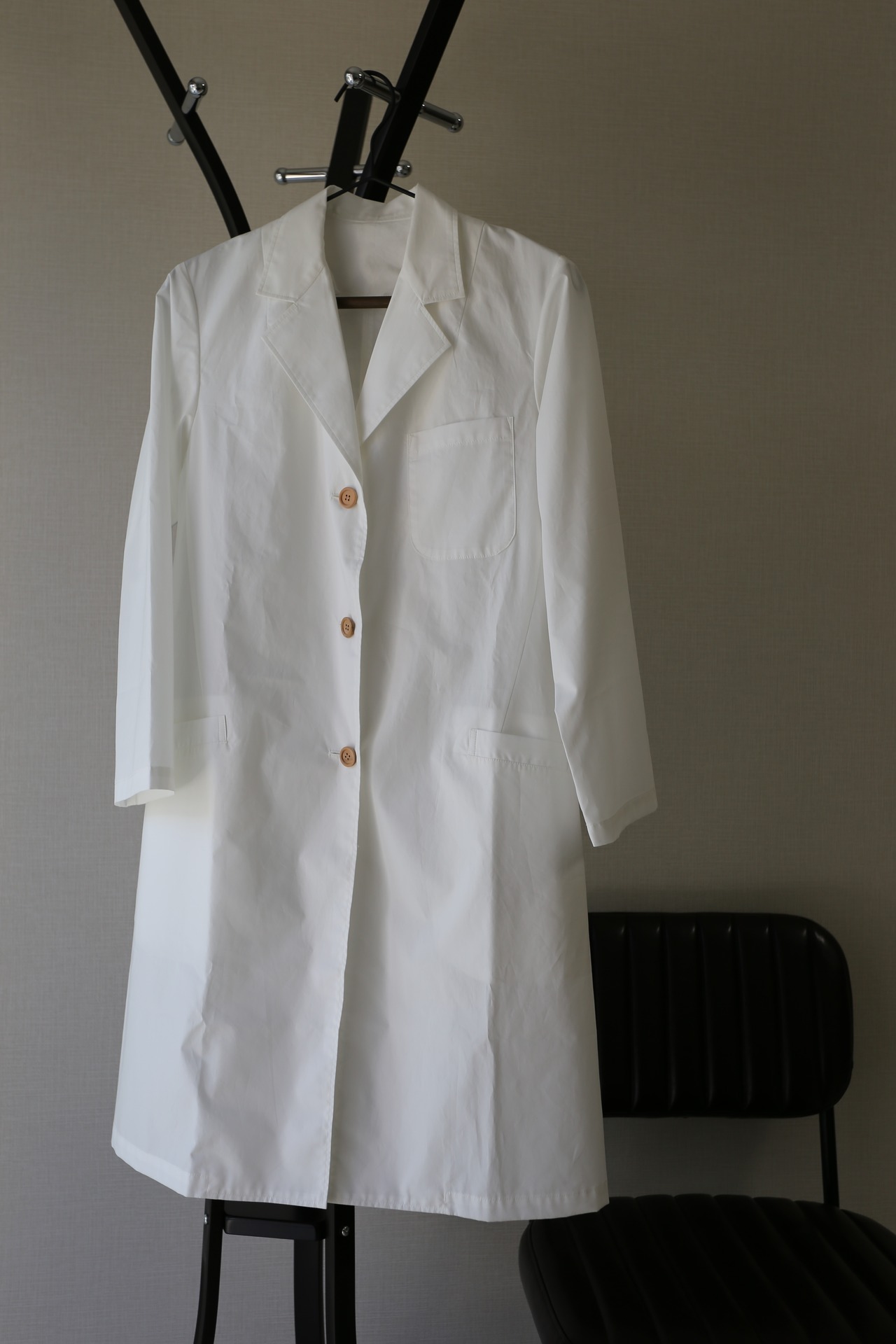 オーガニックコットン100%の高品質な生地で作った白衣です。ポリエステルと違い、とても優しい肌触りです。心地良く、毎日のお仕事にご使用いただけます。