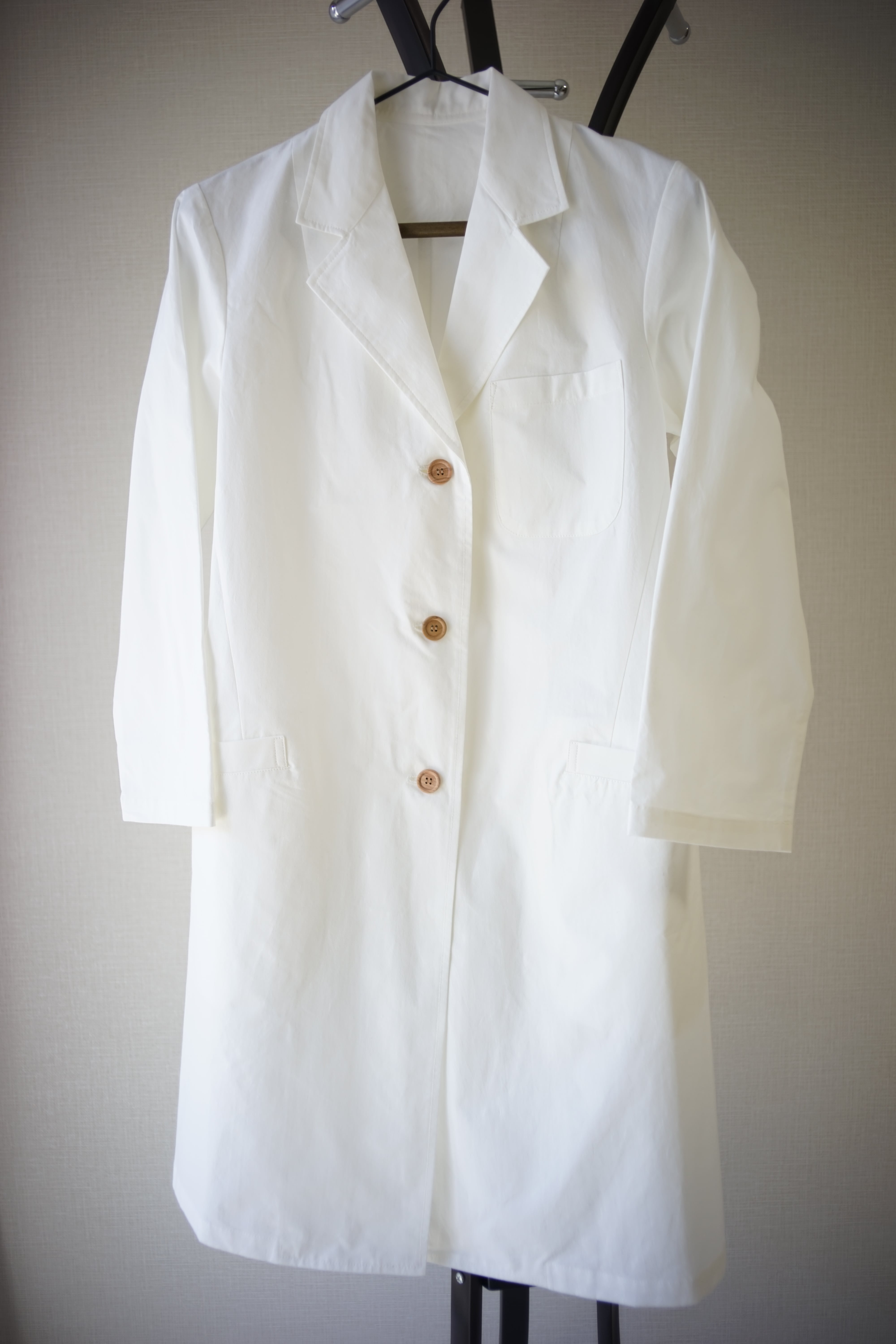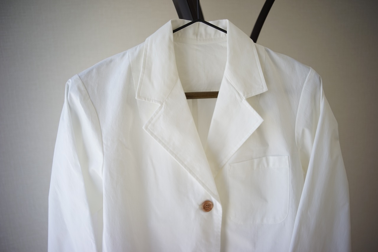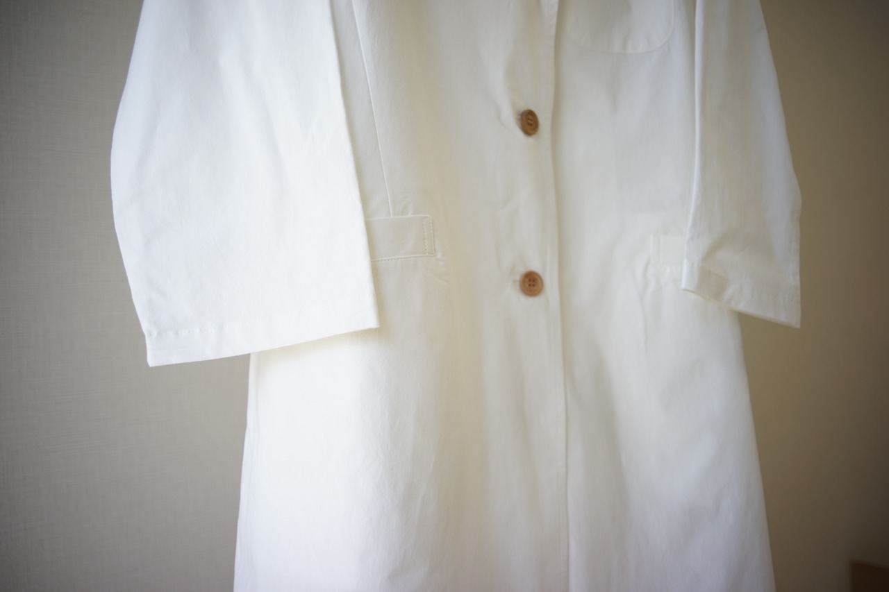 オーガニックコットン100%の軽くて丈夫な生地で作った白衣です。